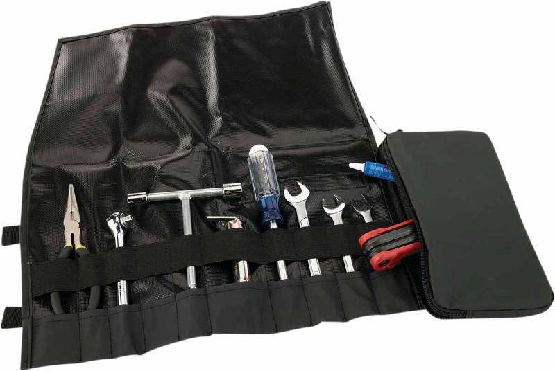 Revised shape better secures and segregates your tools, and includes a small zipper bag for odds and ends like fuses and chain master links