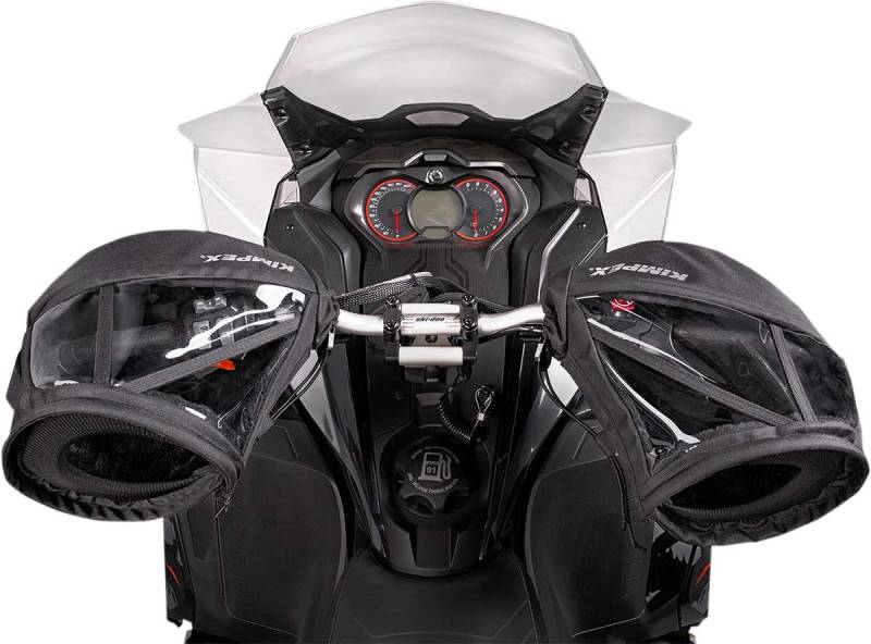 Does the cold spoil your snowmobiling? If so, wear our Kimpex muffs and keep your hands warm at any temperature. The muffs stay supple and comfortable at even the lowest temperature. These muffs fit all snowmobile models.
