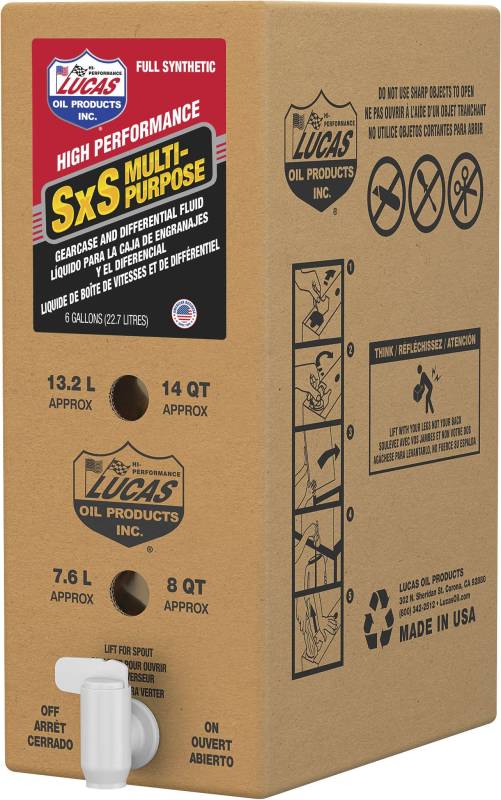 Blended from premium synthetic base oils and combined with shear stable synthetic polymers to deliver a high-quality additive package that includes anti-wear and -oxidants, friction modifiers and corrosion inhibitors, producing a truly superior multi-purpose SxS lubricant, thatΓÇÖs suitable for use with the transmission, gear case, as well as the front and rear differentials. Lucas Oil Synthetic SxS Multi-Purpose Gearcase And Differential Fluid will not permanently shear thin, ensuring that viscosity remains constant over the life of the fluid.