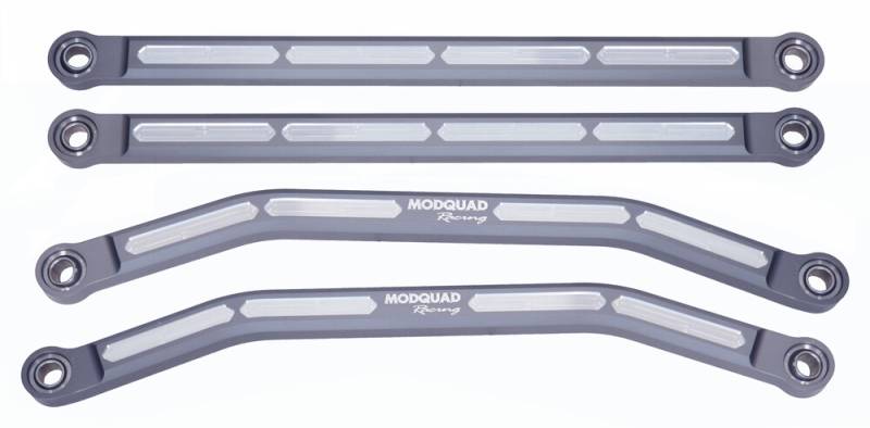 The Aluminum High-Clearance Radius Rods are designed to address stress points in radius rods machined from 2in thick material. They have been manufactured to be an exact stock length replacement, so no adjustments are needed. Modquads design is stronger and lighter than stock, offering improved performance and additional ground clearance in the toughest terrains.