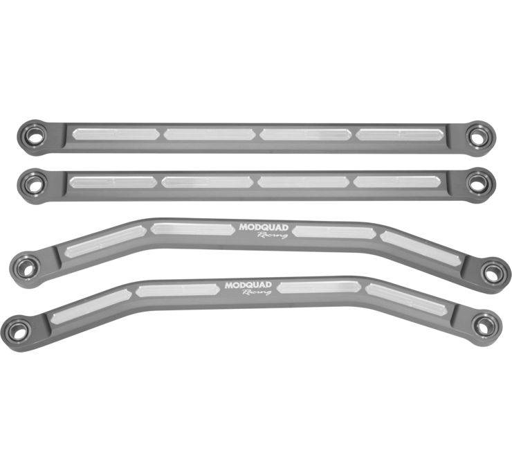 The Aluminum High-Clearance Radius Rods are designed to address stress points in radius rods machined from 2in thick material. They have been manufactured to be an exact stock length replacement, so no adjustments are needed. Modquads design is stronger and lighter than stock, offering improved performance and additional ground clearance in the toughest terrains.