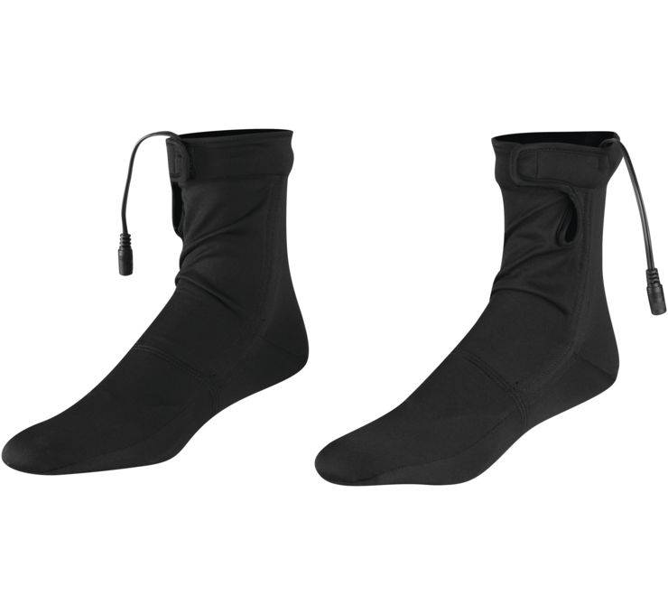 Our Heated Sock is made from micro fleece to warm the most common areas riders get cold, their feet. We reduced the bulk by using the latest in flat heat technology and focused on heel fit to make sure itΓÇÖs seamless in the toe area. Hook up the socks to our Heat-troller through our Heated Pants or order our Long Y cable to power them alone. There are 9 watts of heat (a draw of .7 amps at 13.8 volts) in each sock.