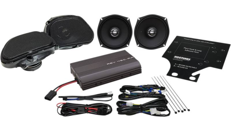 Includes Gen 3 5in. x 7in. front speakers with grilles, rear speakers and 200-watt, 4-channel amplifier