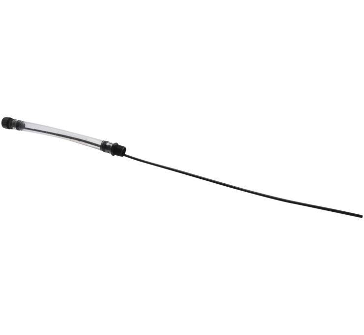 The 3/4in. flexible clear hose with auto shut off built into the hose which eliminates over poring and allows for a quicker pour. Fluid stops flowing after reaching the end of the hose automatically.