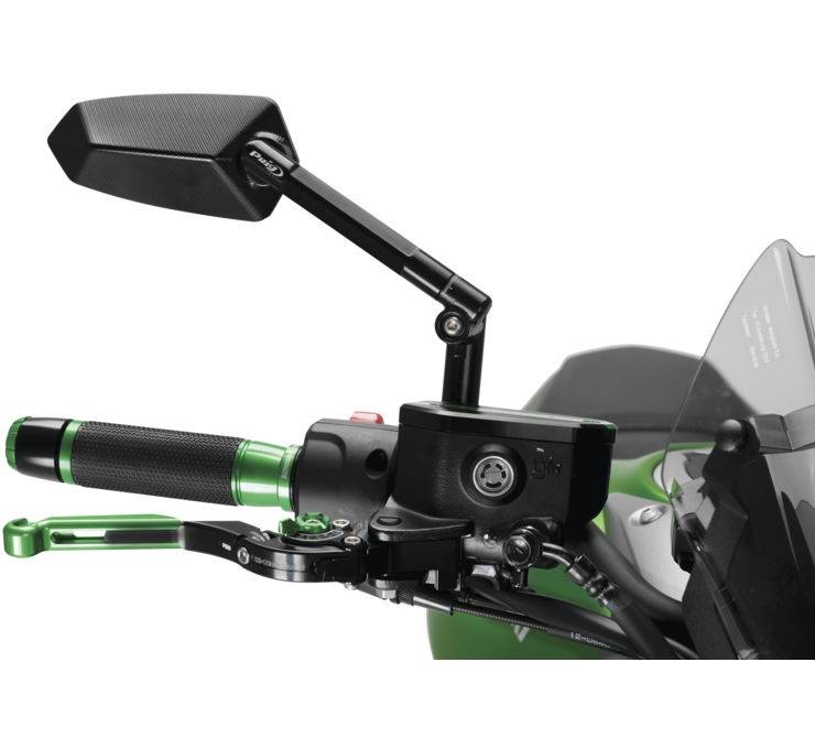 Machined from an anodized billet aluminum block. Designed under the Puig Hi-Tech parts parameters with anti-glare glass for clear vision. Adjustable angle and height thanks to its ball and socket joint system. Adaptable to the mirrorΓÇÖs rod or to the original fairing of the motorcycle using adaptors.