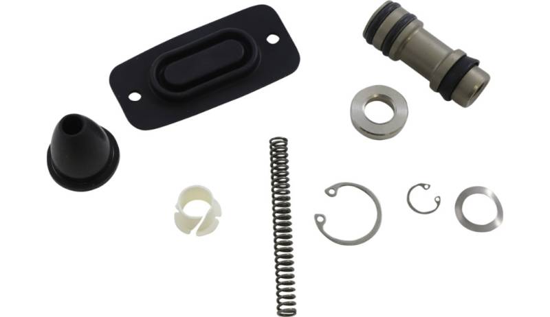 Include one each of the following: piston, large circlip, small circlip, wave washer, white plastic flange bushing, aluminum spacer, gasket and rubber cap