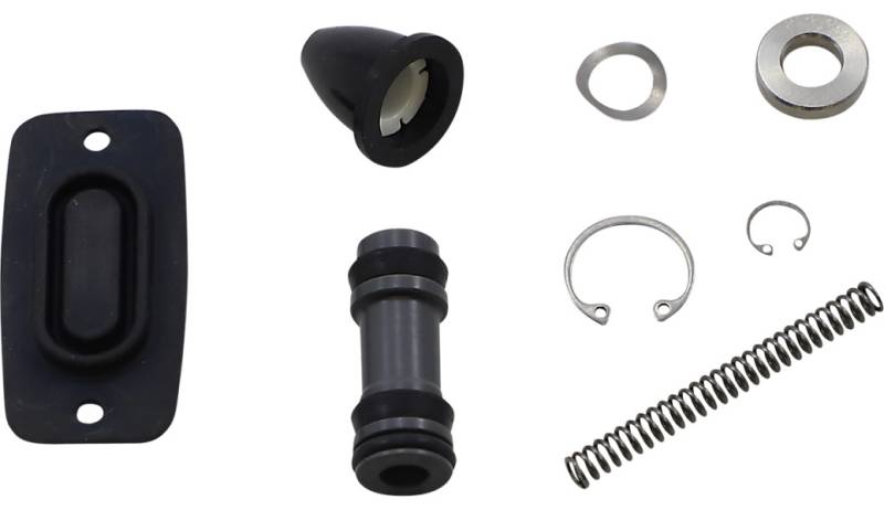 Include one each of the following: piston, large circlip, small circlip, wave washer, white plastic flange bushing, aluminum spacer, gasket and rubber cap