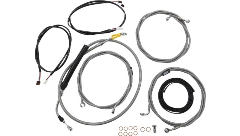Kits include the correct length braided brake/ clutch lines and wire extensions to complete a handlebar swap