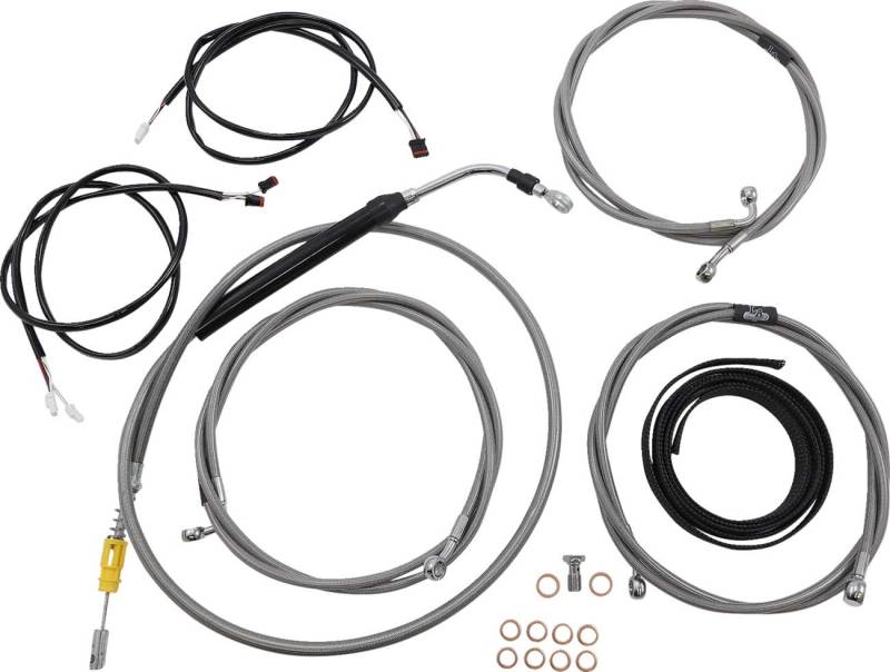 Kits include the correct length braided brake/ clutch lines and wire extensions to complete a handlebar swap