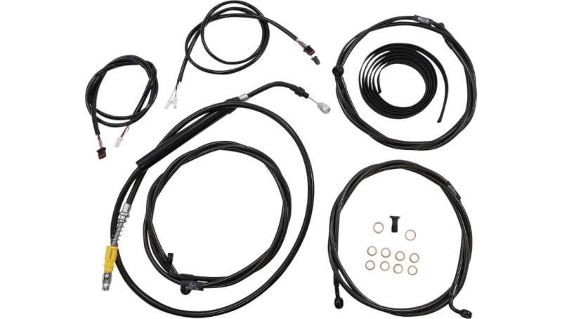 Kits include the correct length braided brake/ clutch lines and wire extensions to complete a handlebar swap