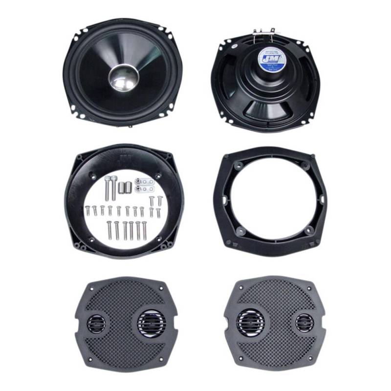 Kit includes 400W RMS 4-ch amp, 7.25in. fairing and 5.25in. trunk pod speakers