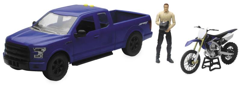 New Ray Toys 1:14 Scale Blue F-150 Truck with Yamaha YZ450F Motorcycle - 02216B