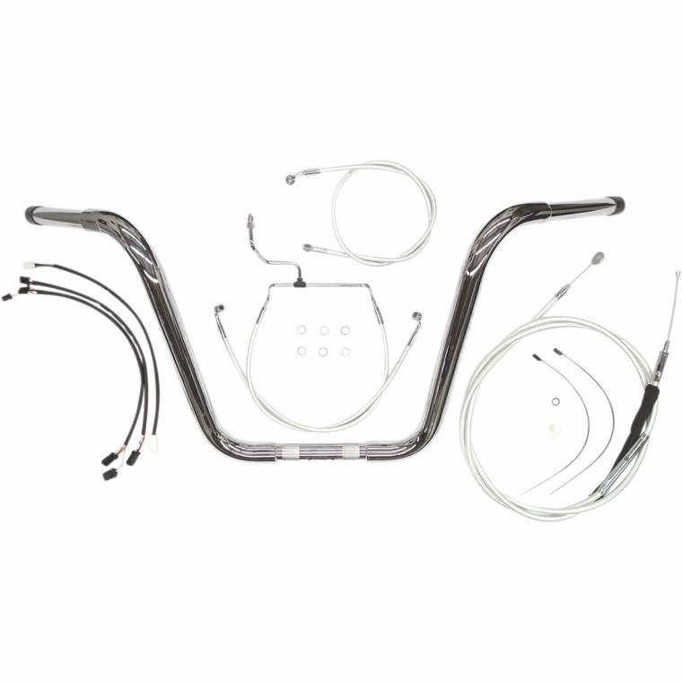 Kits include: Magnum 1-1/4in. Caliber handlebars, throttle and idle cables (except 08-16 Dressers, 16-17 Softail and 16-17 FXDLS models), a clutch cable or hydraulic clutch line, brake lines, copper crush washers, hardware and wiring extensions
