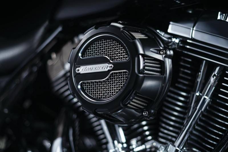 Available in Chrome or Black with embossed stainless steel badge featuring the Crusher word mark, the Maverick Air Cleaner can support engine builds in excess of 150 hp, features a Crusher-designed K&N lifetime filter element, and a high-flow curved entry to the throttle body for optimum performance.