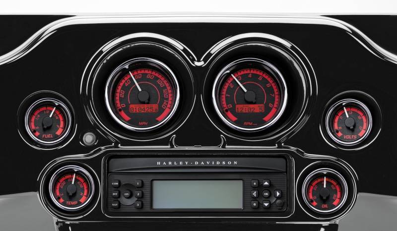 Whether you start with a 2-gauge set and build your favorite options or choose the 6 gauge pre-configured setup, you can display 7 gauge readings in the LCD Message Centers in the Speedometer and Tachometer (Speed, RPM, Volts, Fuel, Oil Pressure, Oil Temp, and Air Temp), as well as Miles to Empty and performance readouts(0-60 speed and time as well asmile speed and time).