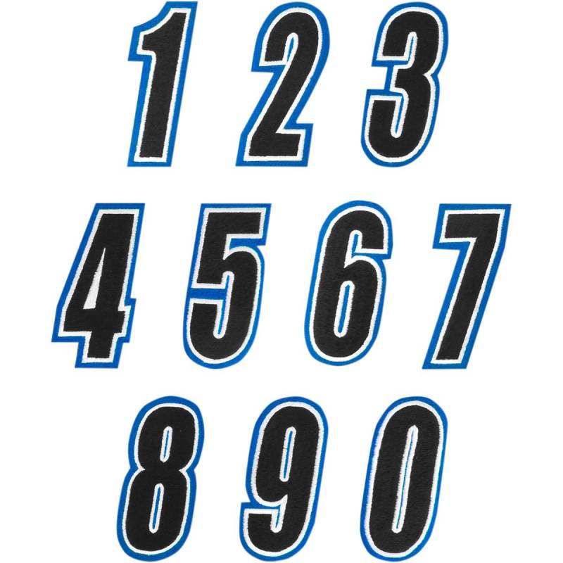 High-quality embroidered numbers available in popular OEM colorways