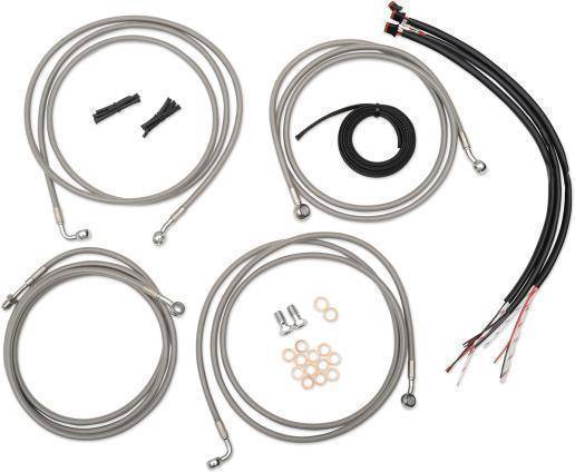 Stainless braided kits include throttle cable, idle cable (except 08-15 Dressers), clutch cable, brake lines, chrome T brake line junction, banjo bolts, fittings and copper crush washers
