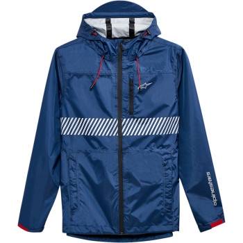 Fixed hood, pre-curved arms, coated reverse-coil front zipper, zipper hand pockets