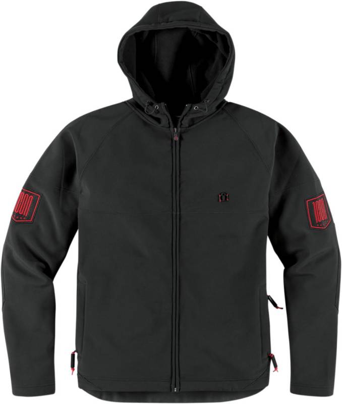 Icon ergo zipper puller on front zip and molded cord keepers on others