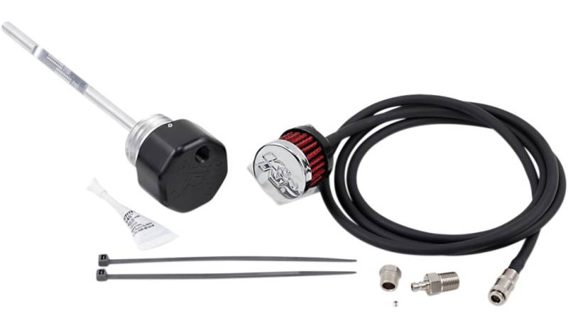 Billet dipsticks vent/ breathe excessive crank case pressure from the oil tank through a PVC style breather consisting of an oil separator system, perforated disc, replaceable filter element and umbrella flapper valve