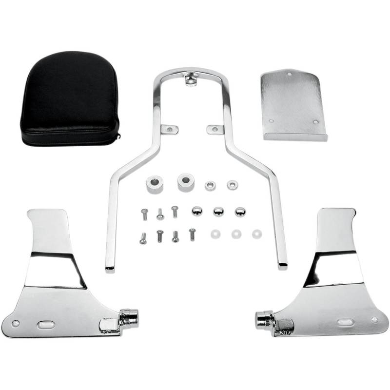 Bolt-on rear sissy bar includes padded backrest to increase passenger comfort