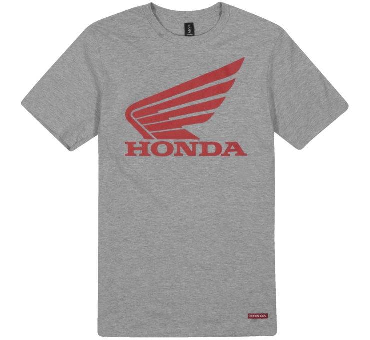 A refresh of the classic tee, this lightweight cotton/poly blended shirt will move with you on all your tours and adventures. Features a large wing logo centered across the front chest and a Honda label embroidered on the hem.