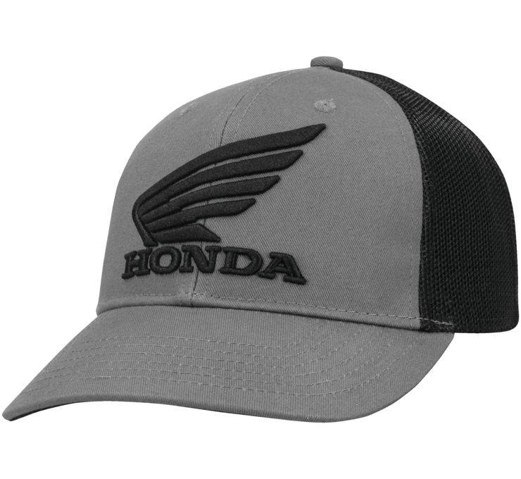 This transformed trucker hat features the Honda(R) wing logo 3D puff embroidered on the front panel.