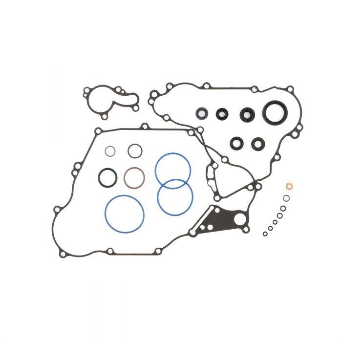 All bottom-end gasket kits contain center crankcase gasket, inner and outer clutch cover gaskets, water pump gasket and mag cover gasket