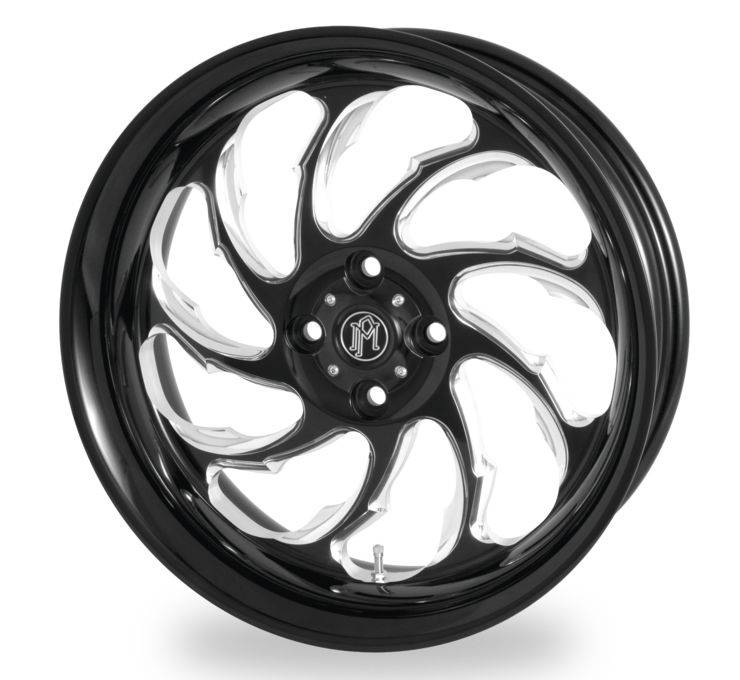 The Performance Machine Trike wheels are the first of their kind to be manufactured for H-D Trike applications and other select Trike manufacturers. PM's dedication to innovation has resulted in a wheel that will go unrivaled in design and function. PM starts with a specially designed wheel blank that was developed to be a perfect match to our forged motorcycle wheels. Using this exclusive forging, rather than a stock automotive forging, creates a more 'sthetically appealing package for your three-wheeled ride. The wheel center is finished with a hub cap featuring a PM logo with machined openings to expose the lug nuts.