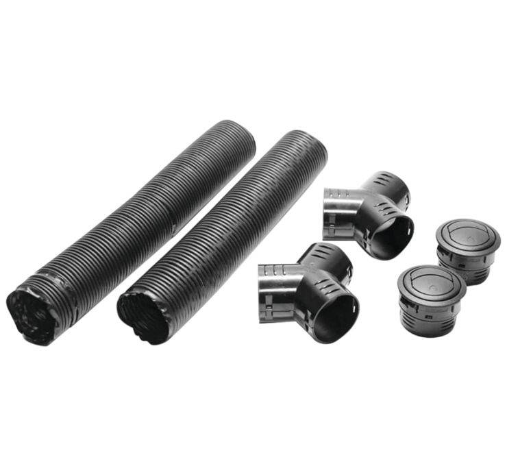 The Cab Heater Extender Kit allows you to extend the capabilities of your heater to the rear of the cab using a 2in. flexible duct hose with louvers and t-fittings.