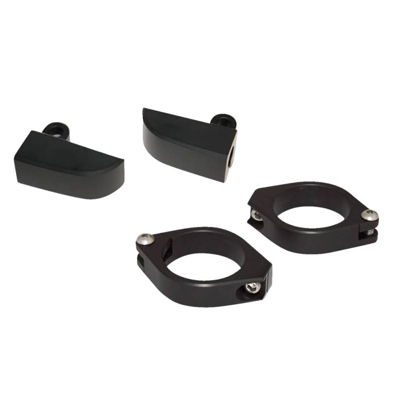 A - Black anodized aluminum holder for mounting turn signals on CNC aluminum standpipe clamps. Sold as a pair.