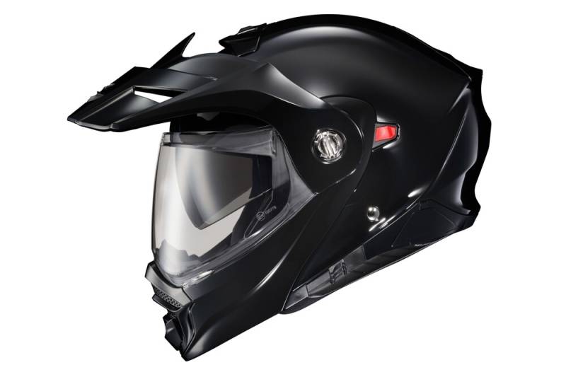 The EXO-AT960 Modular Helmet has evolved from one of the most popular Adventure Motorcycle helmets on the market; the EXO-AT950. Maintaining its high value (in addition to U.S. DOT Certification), ScorpionEXO has now added the latest ECE 22.06 Safety Rating, which requires a wider range of testing than the previous 22.05 certification. The EXO-AT960 can be used as a full face ADV helmet with external peak visor attached, or the peak visor can be removed for a more 'rodynamic touring helmet. The oversized eye port is extremely wide for greater peripheral vision and downward visibility, and the modular chin bar can be conveniently flipped up. The internal drop down Speedview sun-visor allows you to adjust to changing lighting conditions throughout the day. Additionally, the no-fog Everclear face shield can be removed and you can use the EXO- AT960 with goggles for off-road use. Three shell sizes made of Advanced LG Polycarbonate and dual density EPS, result in a helmet that is light weight, strong, and protective. And for those who need to stay connected, the EXO-AT960 was specifically designed to integrate with the new EXO-COM(R) BlueTooth Communicator Kit while the large speaker pockets also make it compatible with many other com