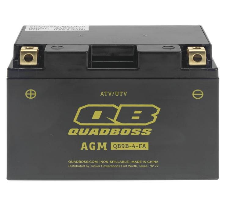 If you're looking for a maintenance-free, non-spillable battery for your ride, the AGM Battery from QuadBoss is the perfect choice. Manufactured from absorbed glass mat designed to capture electrolytes, extending storage life and improving performance. Permanently sealed design prevents leaks and removes the need to check levels or add additional water.