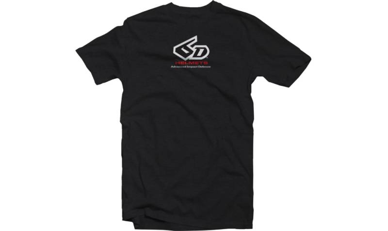 Screen-printed 6D Helmets logo on front of t-shirt