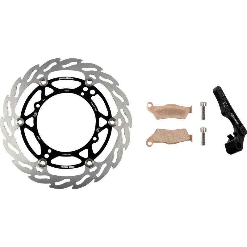 Contains 270mm or 260m oversize rotor, caliper relocation adapter and one set of racing compound front brake pads