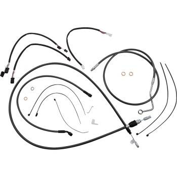 Kits include throttle and idle cables (except 08-15 Dressers), clutch cable or hydraulic clutch line, front brake lines, copper crush washers, hardware and correctly colored wiring extensions with OE-style connectors and shrink tube
