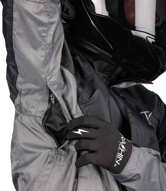 Water resistant YKK arm pit zippers allow for ventilation