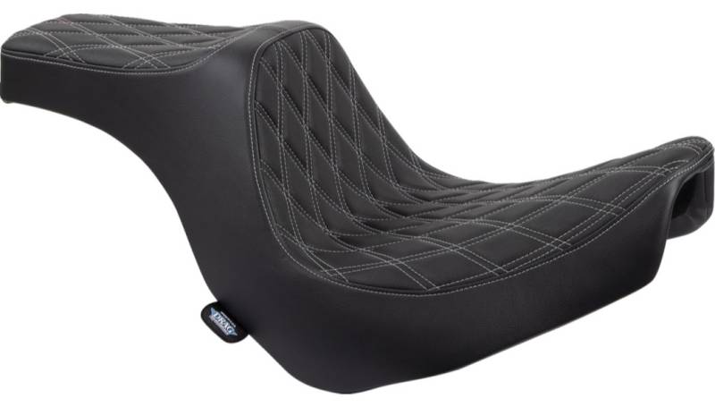 Drag Specialties Predator III Seat - Double Diamond - Black with Silver Stitching - 0802-1493