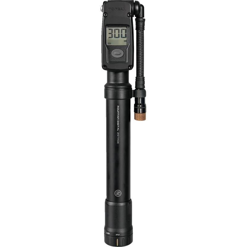 Features innovative 2-stage pressure selector that lets you choose high pressure for filling suspension forks and shock units or high volume for inflating mountain bike tires