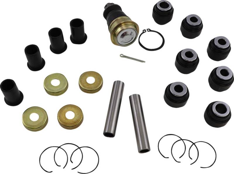 Kits contain all of the components required to rebuild the upper and lower A-arm and knuckle