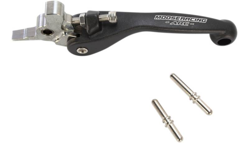 Forged, anodized, and hinged levers with CNC-machined master cylinder interfaces