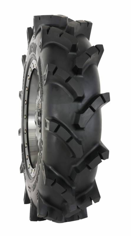 Deep 1.5 - 2.0in. grooved V lug tread pulls thru the deepest bogs and offers easy clean out